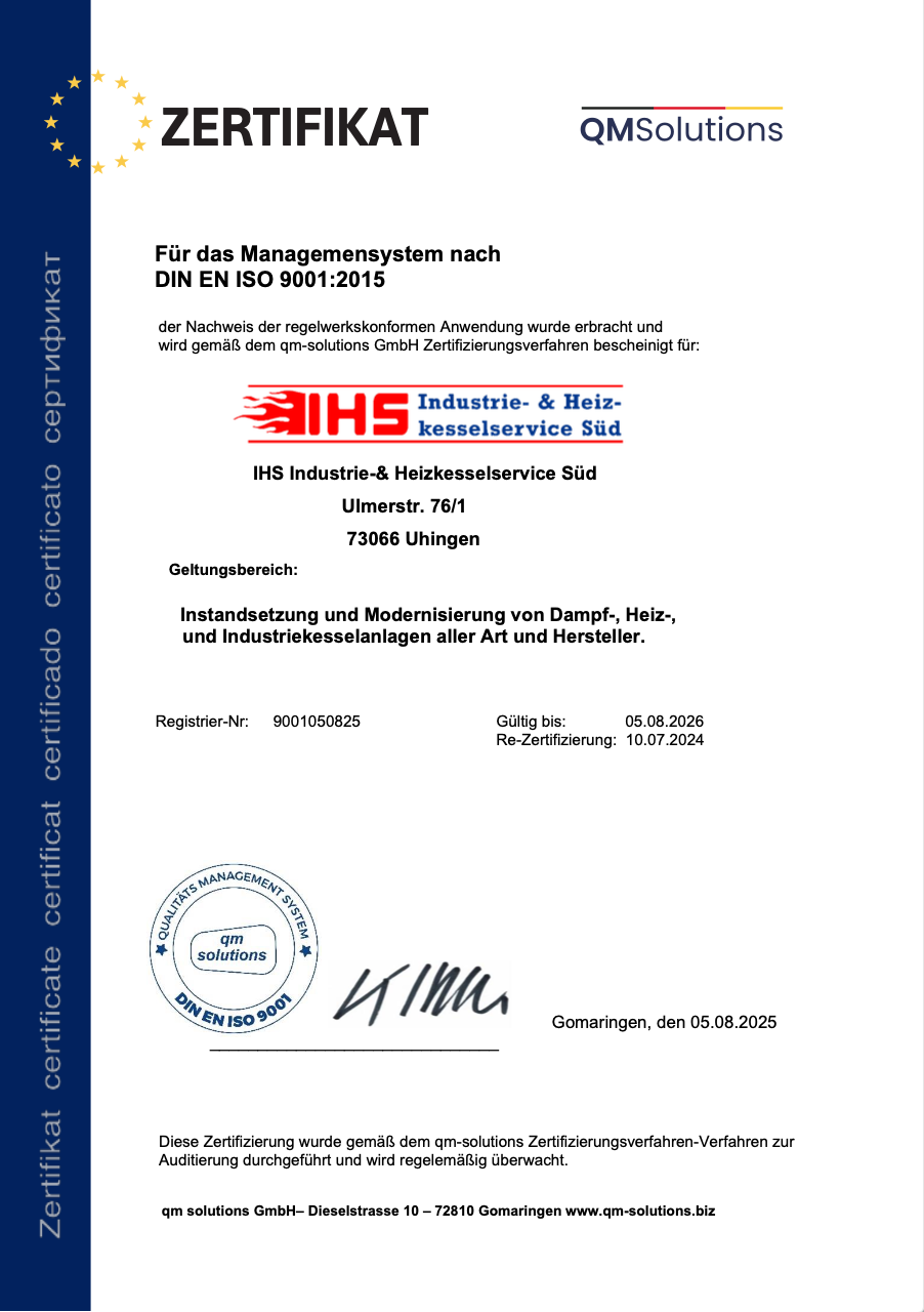 Mit über 1500 m² Werkstattfläche und mehr als 10.000 erfolgreich reparierten Kesselanlagen ist IHS – Industrie- & Heizkesselservice Süd eines der führenden Servicezentren für Heiz- und Industriekessel.