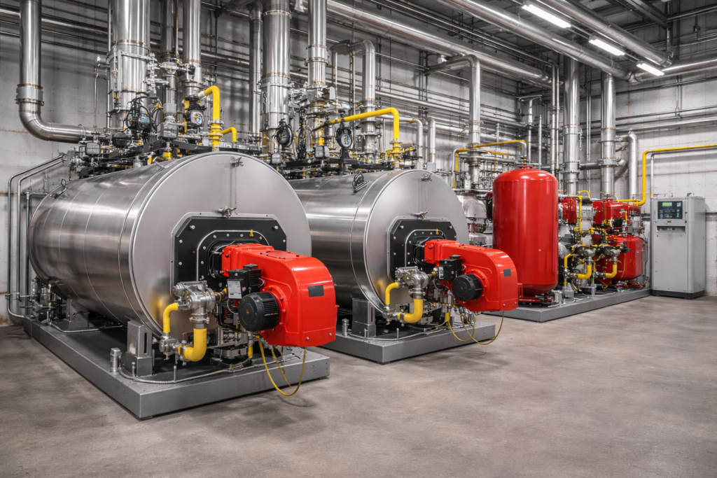 Kleinere Anlagen (ca. 1 MW) starten ab etwa 80.000 €, mittlere Anlagen (5 MW) liegen bei 250.000–500.000 €, große Systeme über 1 Mio. €. Zusatzkosten für Druckhaltung, Pumpen, Isolierung und Installation betragen ca. 50–80 % der Kesselkosten.